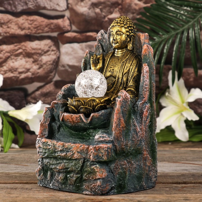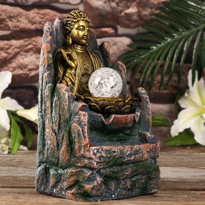 Фонтан настольный от сети, подсветка "Будда с лотосом" золото 26х15,5х13,5 см