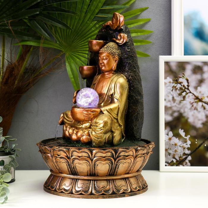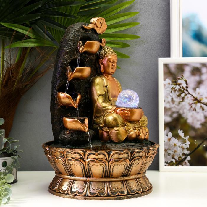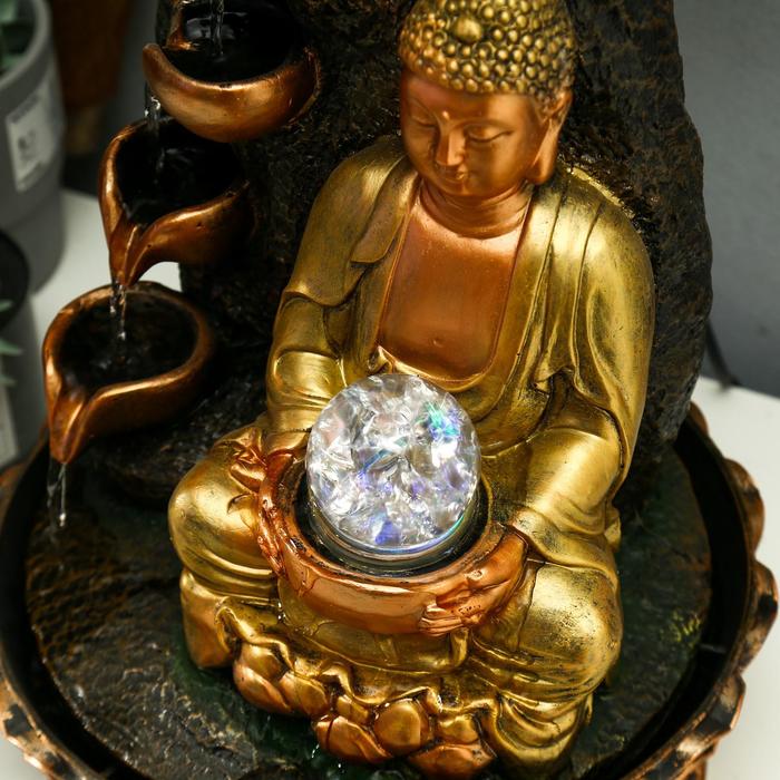 Фонтан настольный от сети, подсветка "Будда у скалы с водопадом" 40х27х27 см