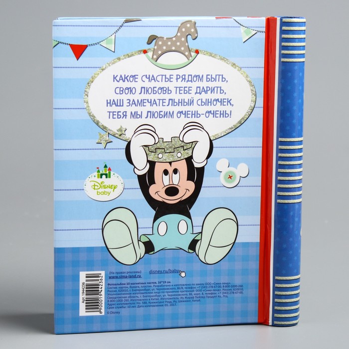 Фотоальбом на 10 магнитных листов в твёрдой обложке "Мой счастливый первый год", Микки Маус