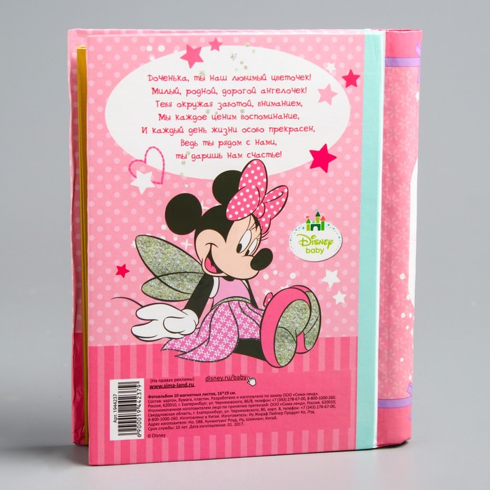 Фотоальбом на 10 магнитных листов в твёрдой обложке "Мой счастливый первый год", Минни Маус