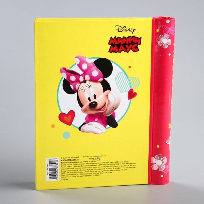 Фотоальбом на 10 магнитных листов в твёрдой обложке "Самая красивая", Минни Маус