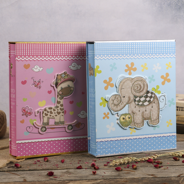 Фотоальбом на 100 фото 13х18 см "Слон/Жираф" в коробке МИКС 29,3х23,5х5,7 см
