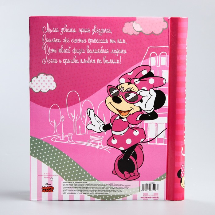 Фотоальбом на 20 магнитных листов в твёрдой обложке "Самая счастливая", Минни Маус
