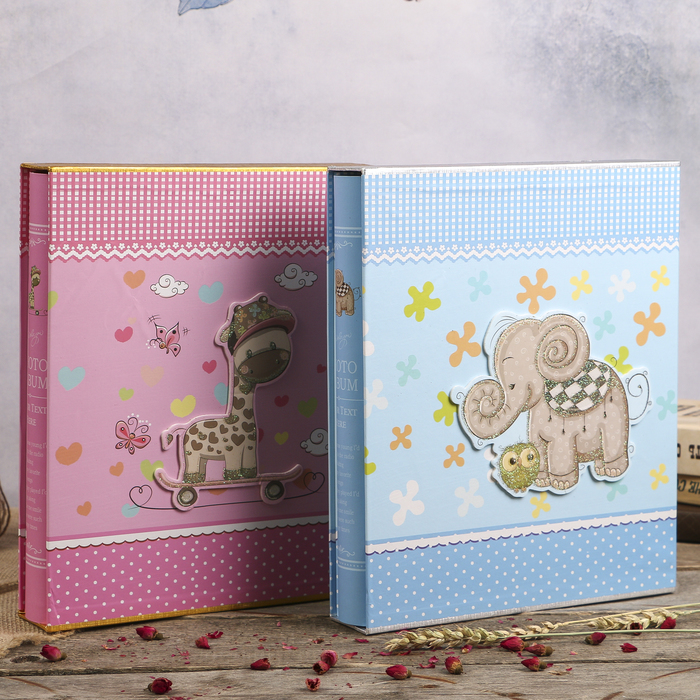 Фотоальбом на 400 фото 10х15 см "Слон/Жираф" объёмный элемент, в коробке МИКС 33,5х27,5х6см