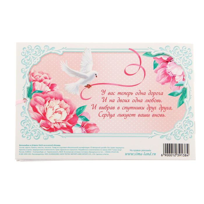 Эксклюзивный фотоальбом в мягкой обложке с лентой "Вместе навсегда", 24 фото — отличный подарок, подчёркивающий яркую индивидуальность получателя. Он вмещает в себя 24 фото форматом 10 х 15 см, а на нежной обложке, украшенной цветочными мотивами, располагается фоторамка для самого любимого и дорогого снимка. Чтобы альбом не раскрывался сам, мы дополнили его ленточками-завязками.