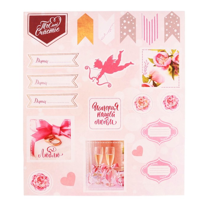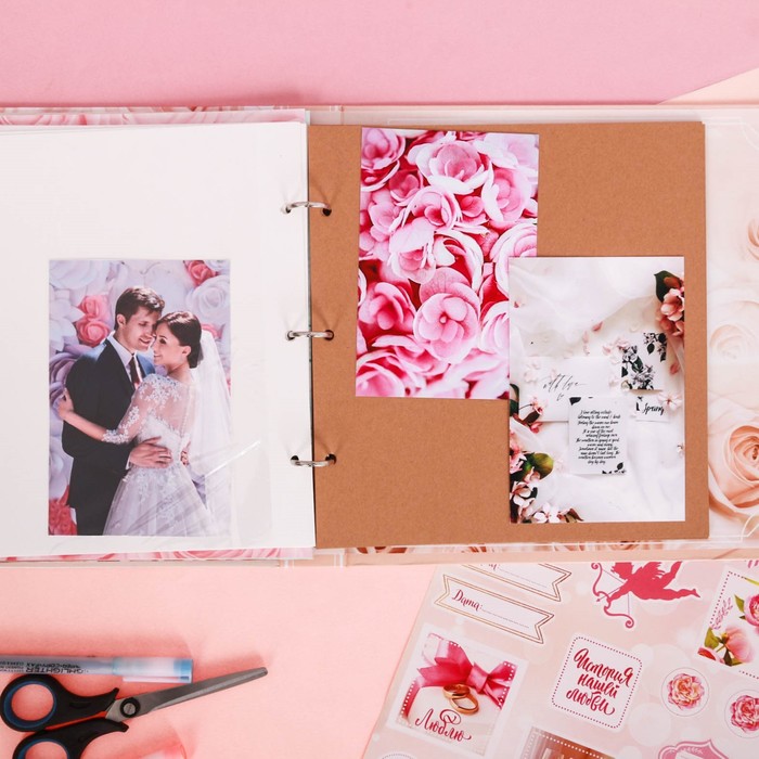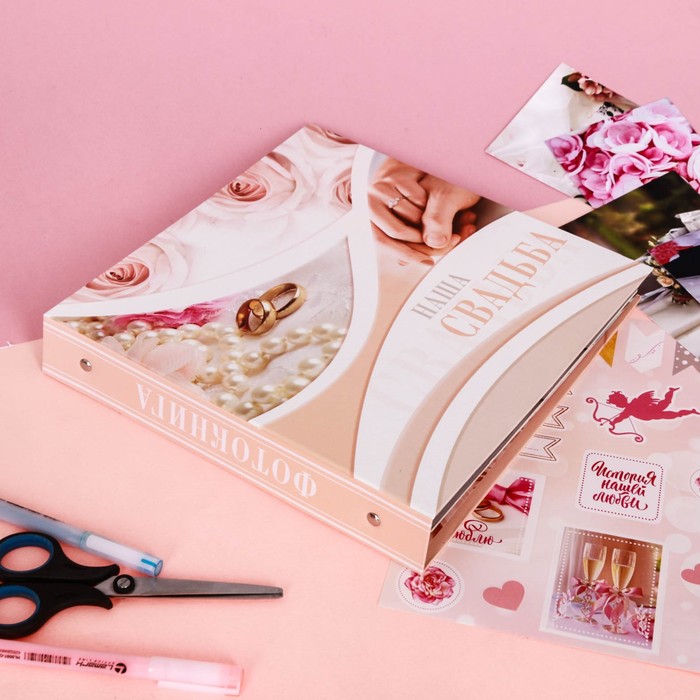 Фотокнига с наклейками "Наша свадьба", 26 х 26 см, 25 листов: 5 дизайнерских, 10 магнитных и 10 цветных