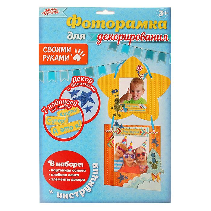 Раскройте свой талант: оформите фоторамку на свой вкус или декорируйте её так, как показано на наглядной картинке на упаковке.