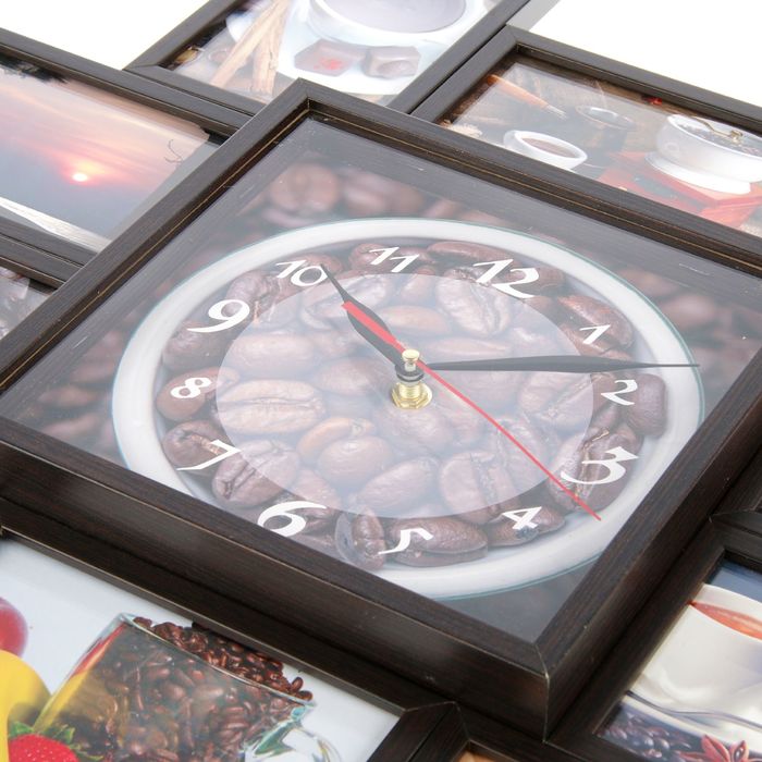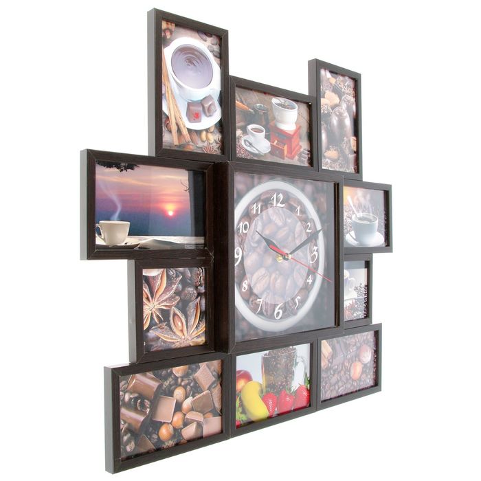 Фоторамка на 10 фото 10х10, 10х15 с часами, венге "Кофе"