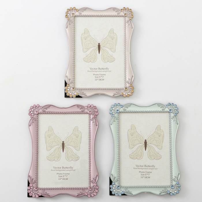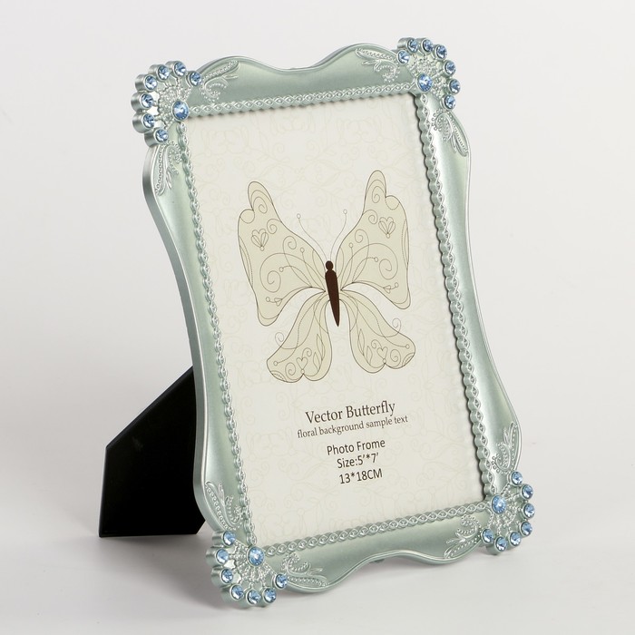 Фоторамка пластик 13х18 см "Павлиний хвост" металлик стразы МИКС 21х16 см