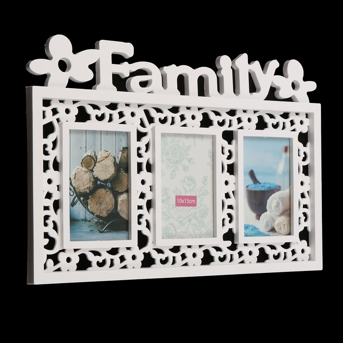 Фоторамка пластик на 3 фото 10х15 см "Цветочки. Семья" белая 30х46 см