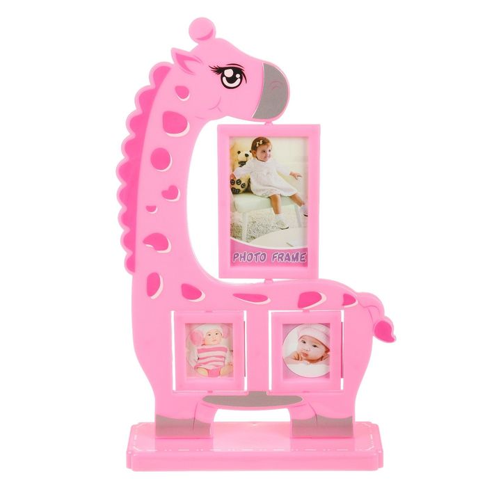 Фоторамка пластик на 3 фото 5,5х4, 11,5х6,5 "Жираф" МИКС 40х23х8 см