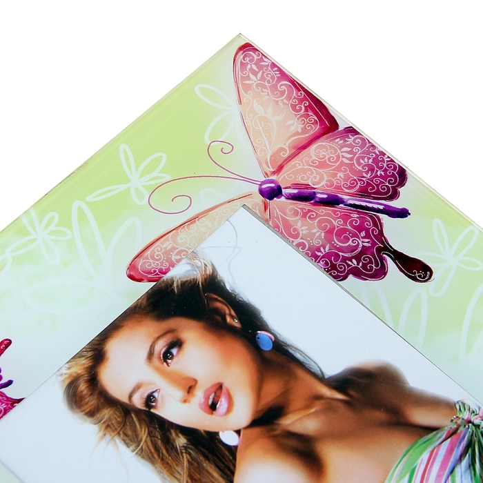 Фоторамки из стекла пользуются особой популярностью среди ценителей роскоши и красоты, ведь благодаря им фотография обретает иные черты, блеск и глянец гламурных журналов. Фоторамка "Весенние бабочки" 10х15 см станет украшением интерьера, элегантным подарком и прекрасным обрамлением для самых ценных кадров, под стеклом фотография хранится намного дольше.