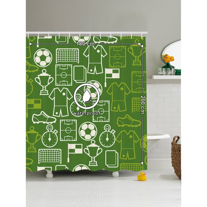 Фотоштора для ванной «Атрибуты футбола», размер 180x200 см