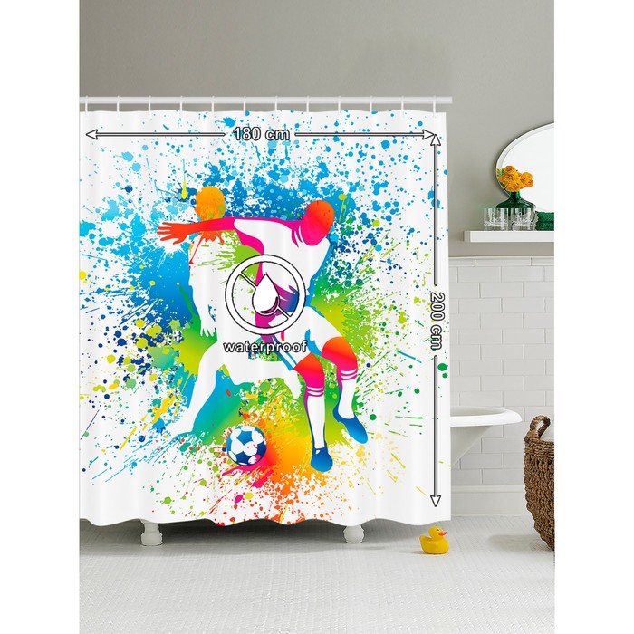 Фотоштора для ванной «Борьба футболистов», размер 180x200 см