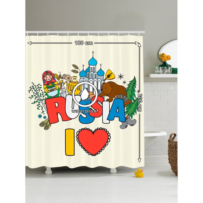 Фотоштора для ванной «Люблю Россию», размер 180x200 см