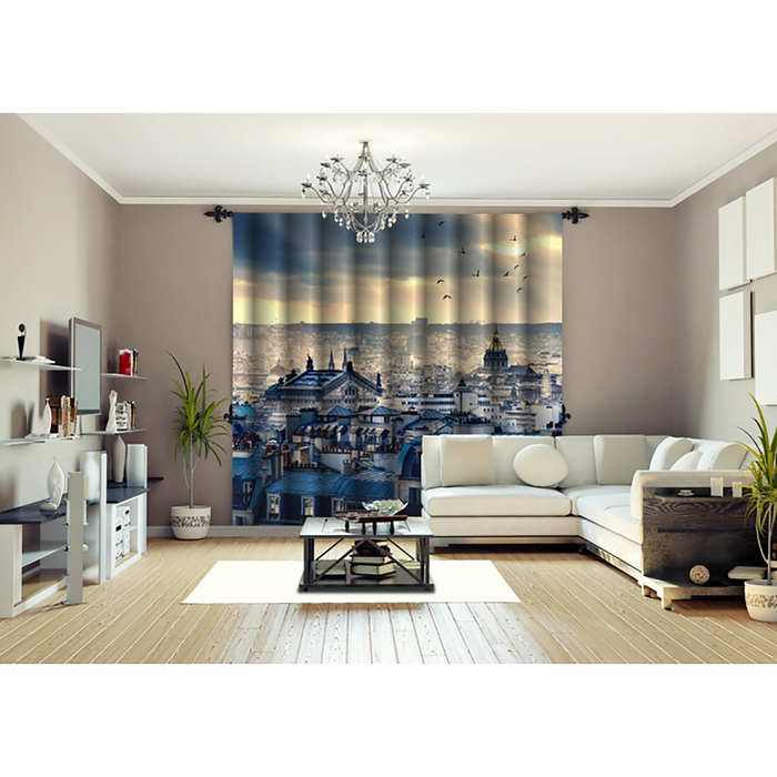 Фотошторы "Синие Крыши" 145х260 см 2шт, габардин 160гр/м2, пэ100%