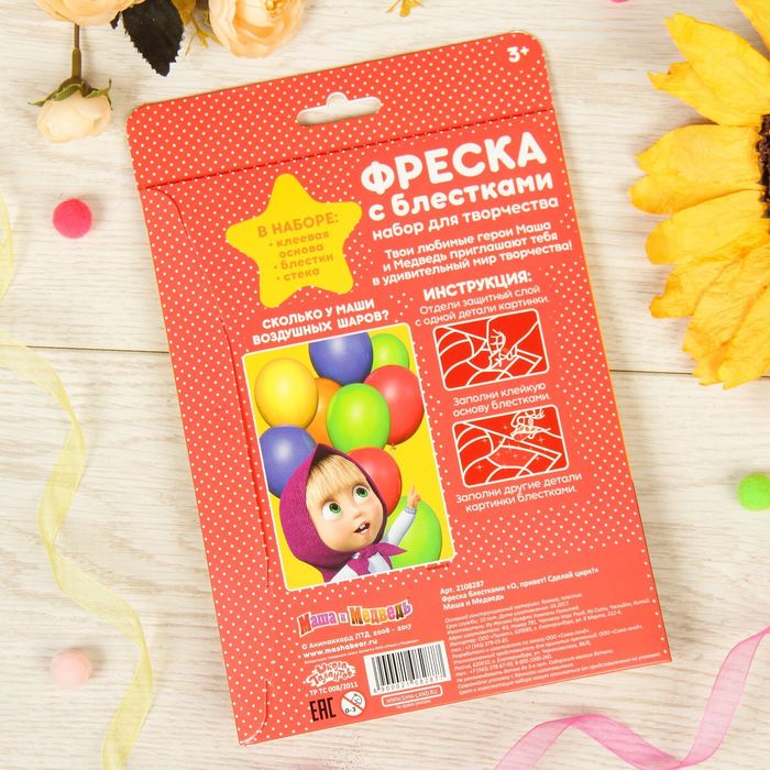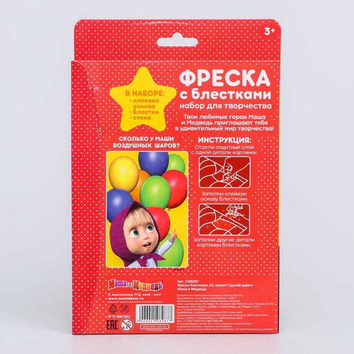 Фреска блёстками (6 цветов) "О, привет! Сделай,цирк!", Маша и Медведь