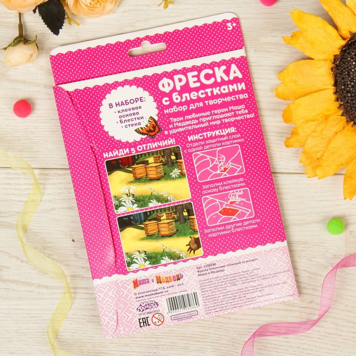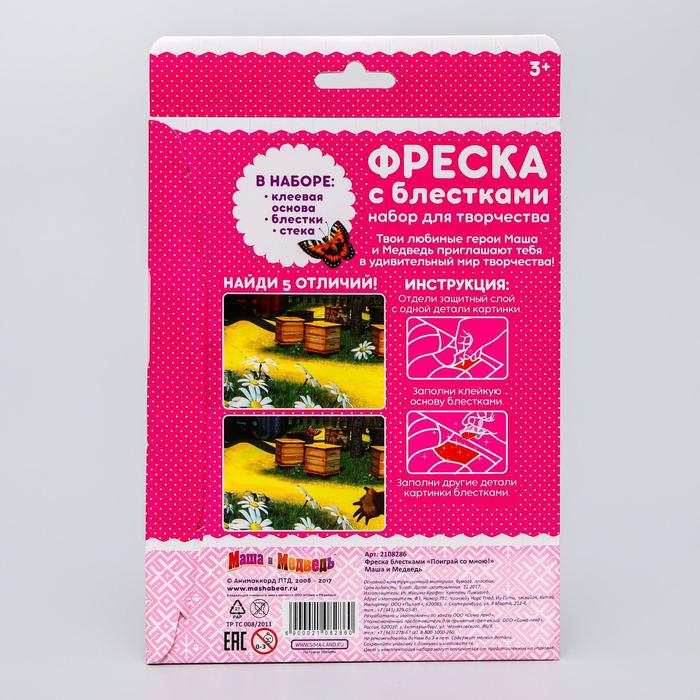 Фреска блёстками (6 цветов) "Поиграй со мною!", Маша и Медведь