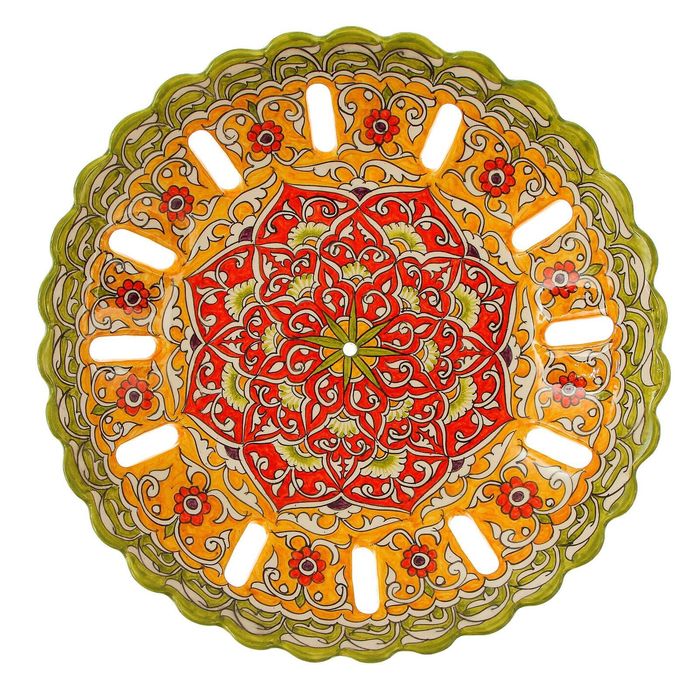 Риштан — город на востоке Узбекистана, один из древнейших в Ферганской долине. С давних времён Риштан славится своим гончарным искусством изготовления цветной керамики. Красноватую глину для изделия добывают в самом городе. Мастера утверждают, что их глина настолько высокого качества, что даже не нуждается в предварительной обработке. Дополните коллекцию кухонных аксессуаров пряными восточными нотами.