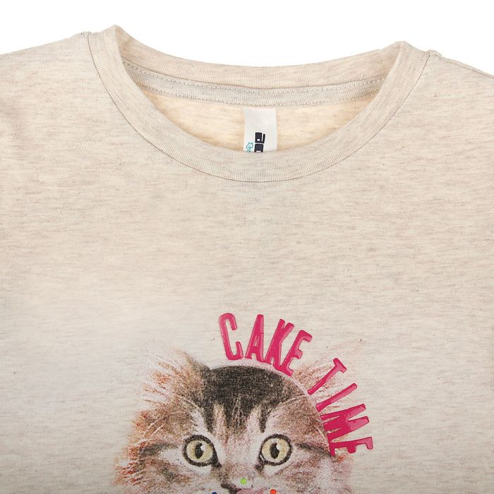 Футболка детская для девочек Pancake, рост 122 см, цвет бежевый (арт. 20220100008) отличается дизайном «как у взрослых»: трикотажный джемпер декорирован ярким забавным принтом и россыпью страз, что выглядит здорово!