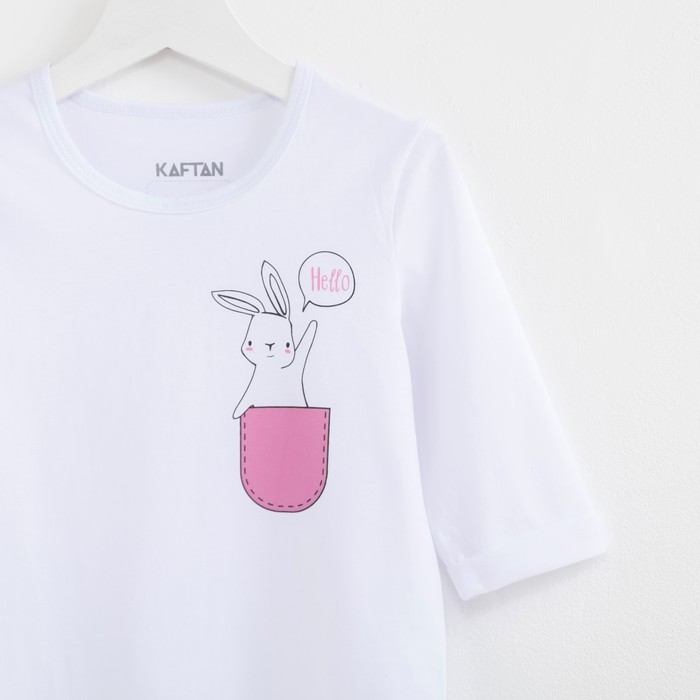 Футболка рукав 3/4 "Зайчик",белая, р-р 30 (98-104см) 3-4г., 100% хлопок