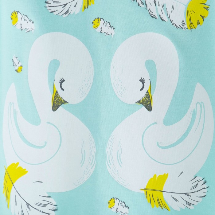 Футболка с дл. рукавом, "Лебеди", бирюзовая, р-р 30 (98-104см) 3-4г., 100% хлопок