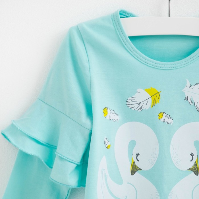 Футболка с дл. рукавом, "Лебеди", бирюзовая, р-р 32 (110-116см) 5-6л., 100% хлопок