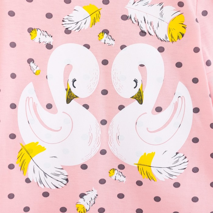 Футболка с дл. рукавом "Лебеди", розовая, р-р 32 (110-116см) 5-6л., 100% хлопок