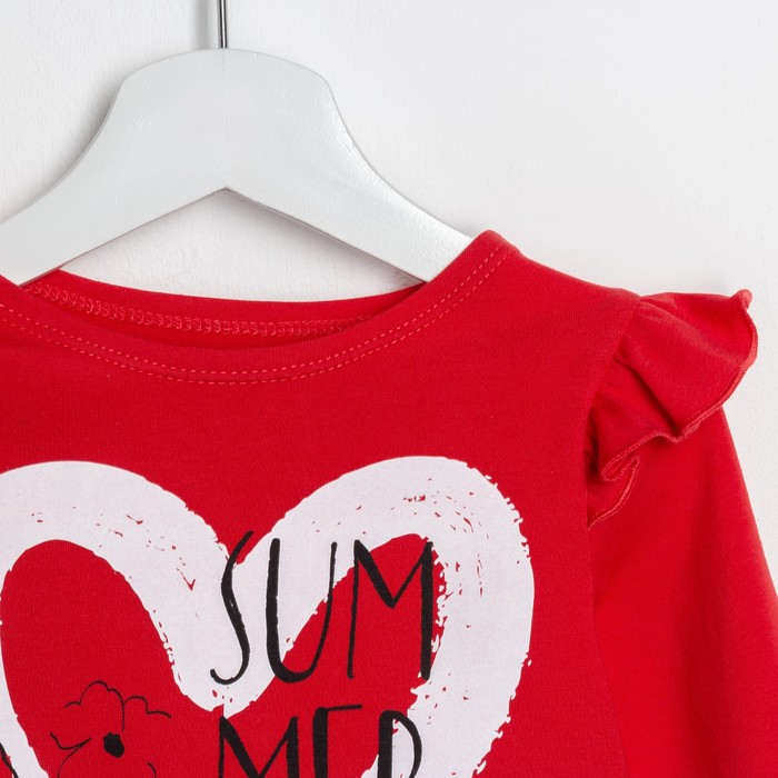 Футболка с дл.рукавом "Love", красн, р-р 34 (122-128 см) 7-8 лет., 100% хлопок