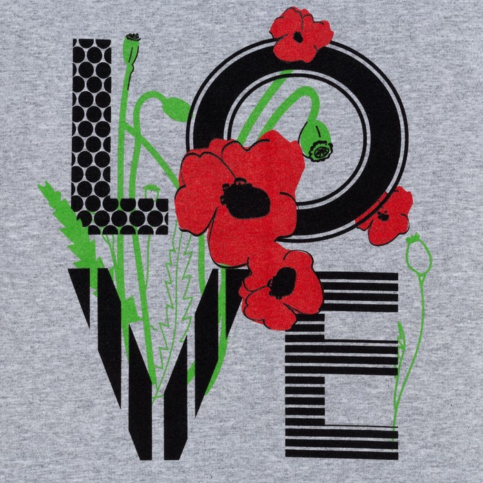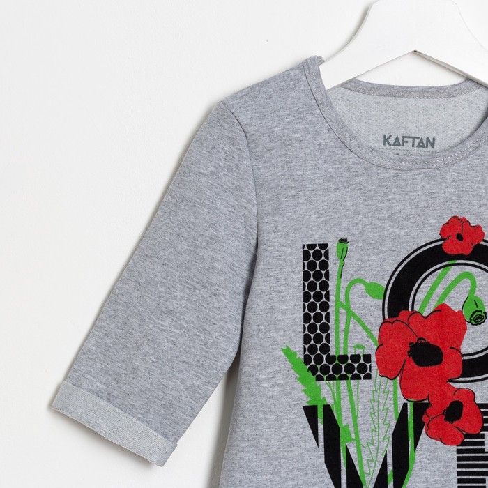 Футболка с дл.рукавом "Love", серая, р-р 32 (110-116 см) 5-6 лет., 100% хлопок
