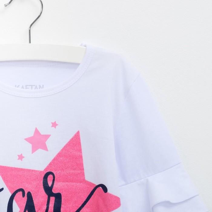Футболка с дл.рукавом "Стар", белая, р-р 34 (122-128 см) 7-8 лет., 100% хлопок