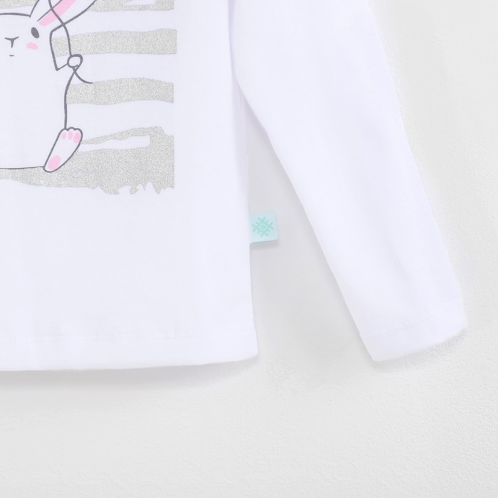 Футболка с дл.рукавом "Зайчик",белая, р-р 34 (122-128см) 7-8л., 100% хлопок