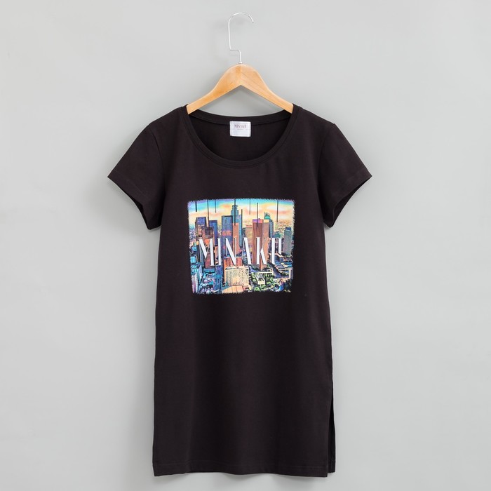 Футболка женская MINAKU «Город», удлинённая, размер 42, цвет чёрный