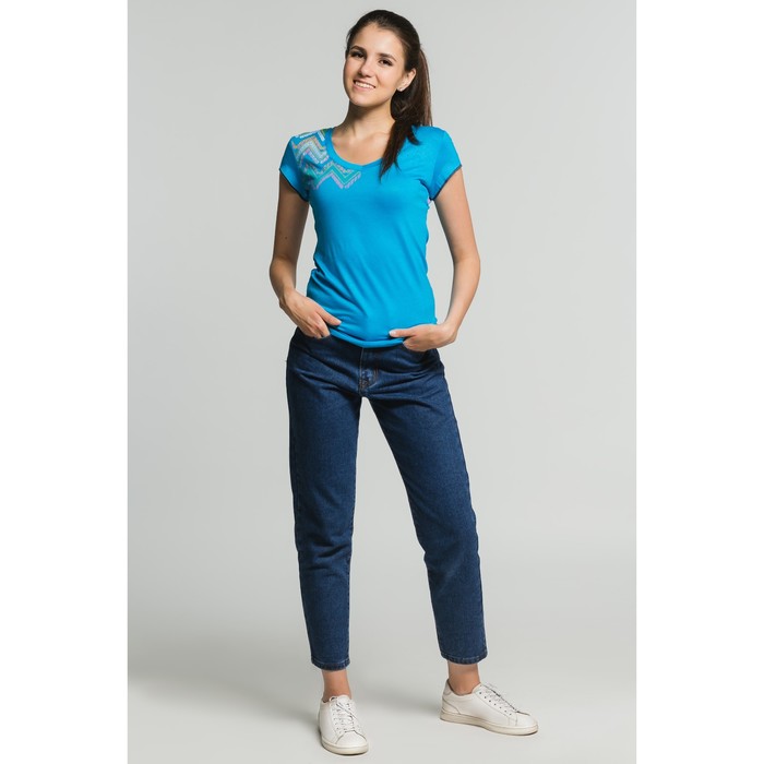 Футболка женская, размер 42, цвет бирюзовый (М-376/1-10) — выбор стильных людей. Вещь изготовлена из качественных и безопасных материалов, а над дизайном работала команда настоящих профессионалов.