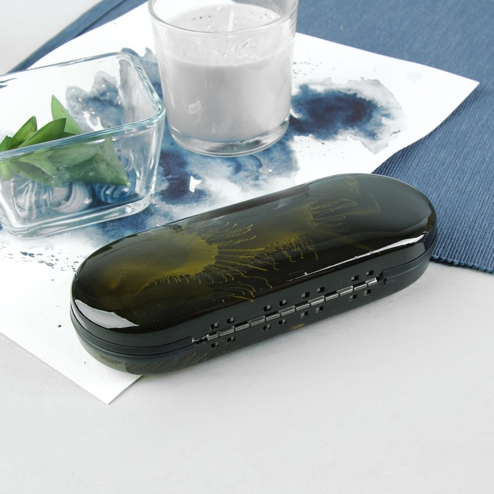 Футляр для очков "Цветы", отдел на клапане, цвет чёрный