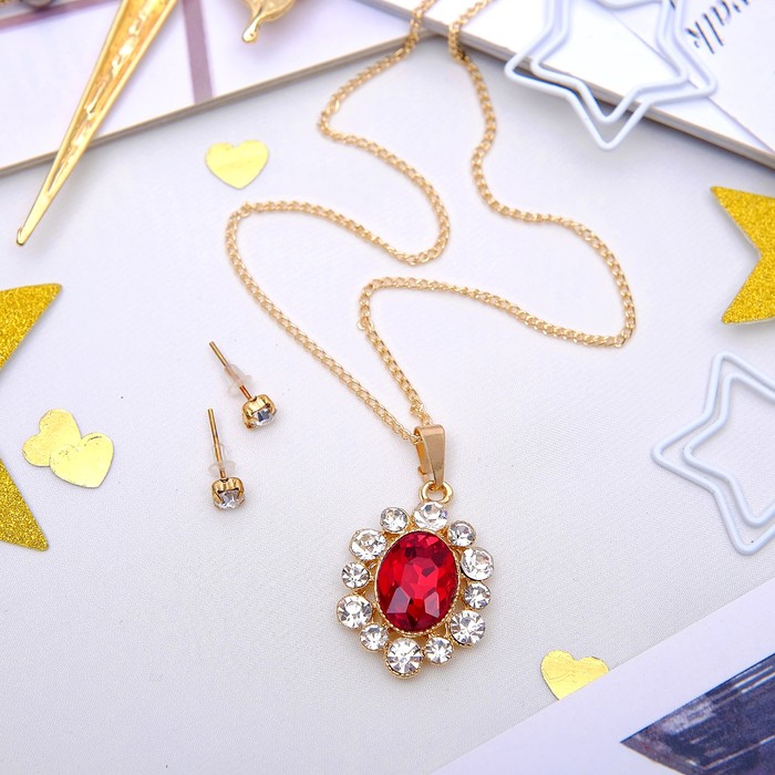 Ни один стиляга не будет выглядеть современно без искусно подобранных украшений, которые завершат его образ! Бижутерия — это современная недорогая альтернатива изделиям из золота и прочих драгоценных металлов. Гарнитур 2 предмета: серьги, кулон "Невесомость", овал, цвет красно-белый в золоте — это то, что добавит вам шарма!