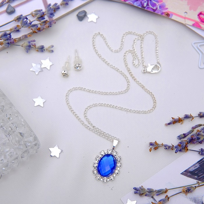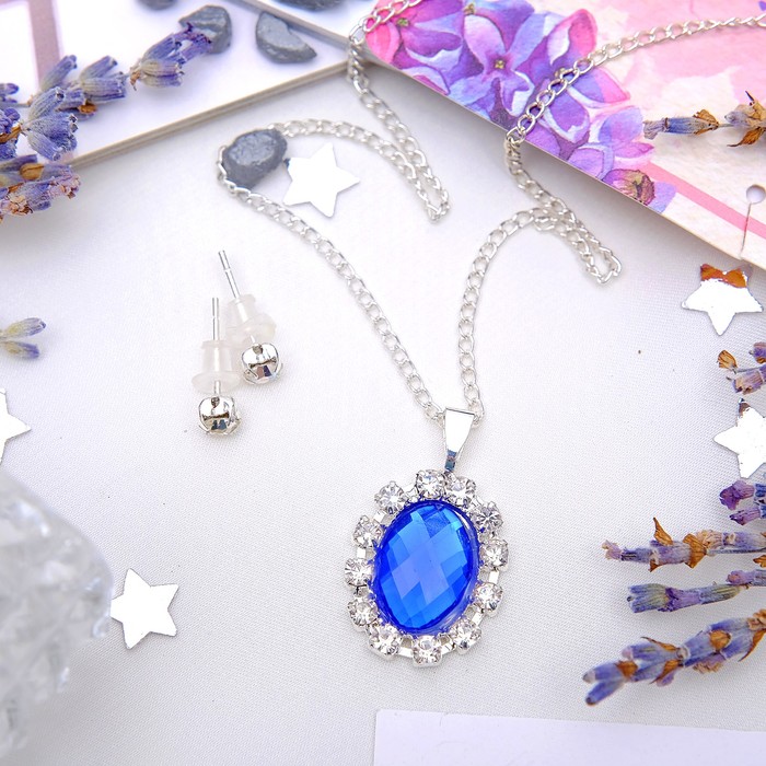Ни один стиляга не будет выглядеть современно без искусно подобранных украшений, которые завершат его образ! Бижутерия — это современная недорогая альтернатива изделиям из золота и прочих драгоценных металлов. Гарнитур 2 предмета: серьги, кулон "Невесомость", овал, цвет сине-белый в серебре — это то, что добавит вам шарма!