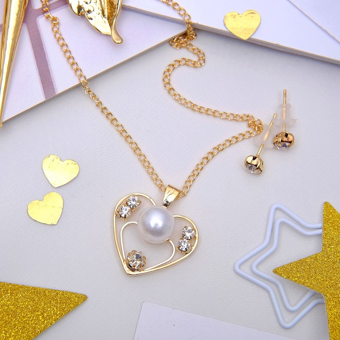 Ни один стиляга не будет выглядеть современно без искусно подобранных украшений, которые завершат его образ! Бижутерия — это современная недорогая альтернатива изделиям из золота и прочих драгоценных металлов. Гарнитур 2 предмета: серьги, кулон "Невесомость", сердце, цвет белый в золоте, 45см — это то, что добавит вам шарма!