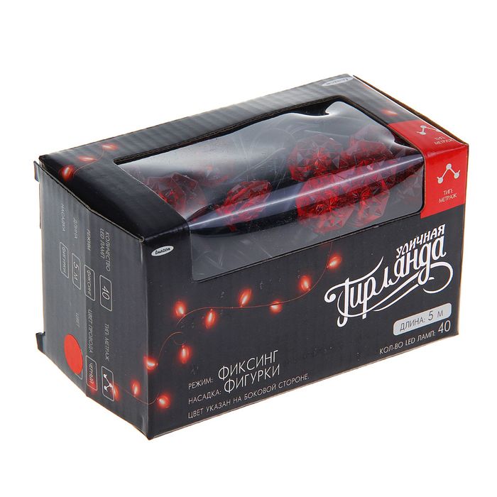 Гирлянда "Метраж" улич. с насад. "Грани" 5 м, Н.Т. LED-40-220V, фиксинг, КРАСНЫЙ