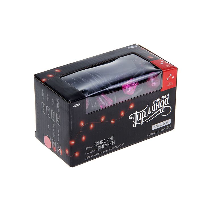 Гирлянда "Метраж" улич. с насад. "Хрусталь" 5 м, Н.Т. LED-40-220V, фиксинг, РОЗОВЫЙ