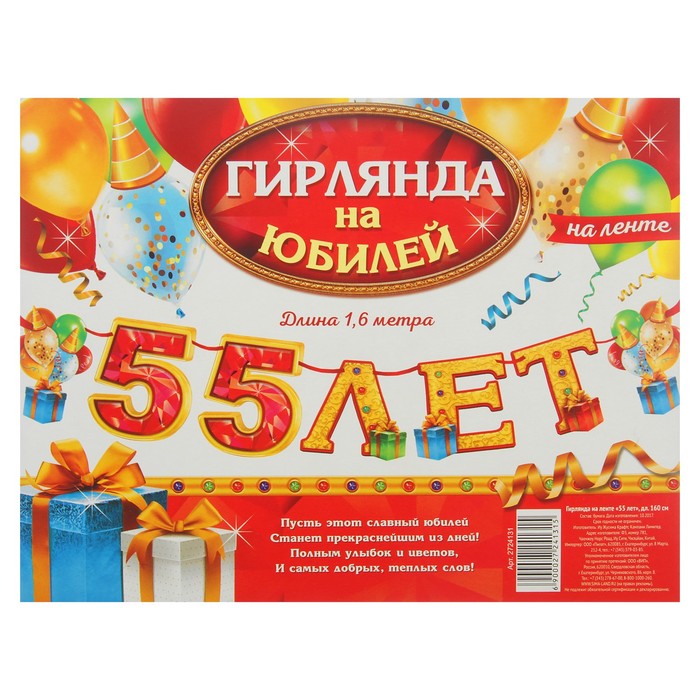 Гирлянда на ленте "55 лет"