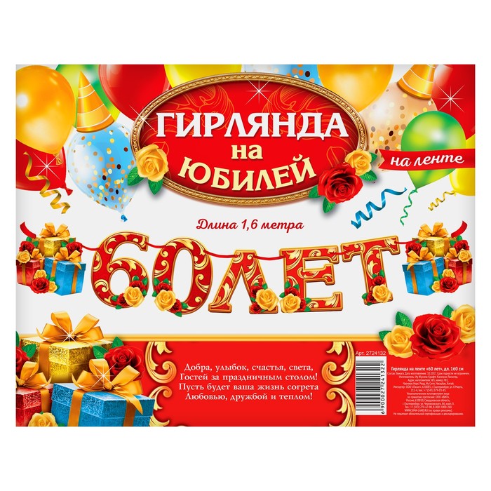Невозможно представить нашу жизнь без праздников! Мы всегда ждём их и предвкушаем, обдумываем, как проведём памятный день, тщательно выбираем подарки и аксессуары, ведь именно они создают и поддерживают торжественный настрой. Гирлянда на ленте "60 лет" — это отличный выбор, который привнесёт атмосферу праздника в ваш дом!