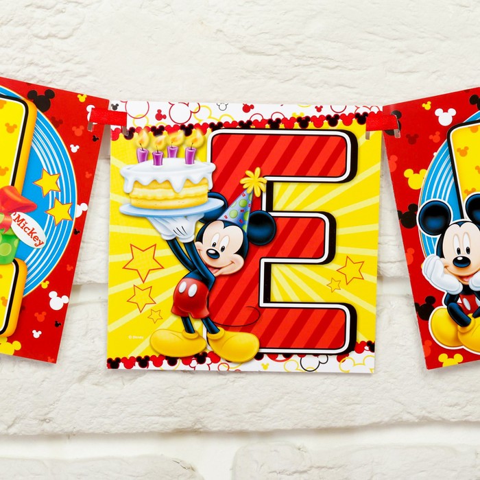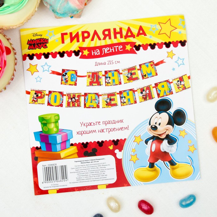 Гирлянда на ленте "С Днем Рождения!", Микки Маус, дл. 215 см