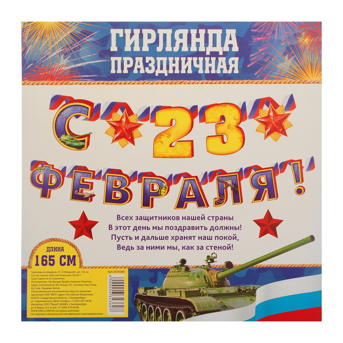 Невозможно представить нашу жизнь без праздников! Мы всегда ждём их и предвкушаем, обдумываем, как проведём памятный день, тщательно выбираем подарки и аксессуары, ведь именно они создают и поддерживают торжественный настрой. Гирлянда на люверсах "С 23 Февраля!" — это отличный выбор, который привнесёт атмосферу праздника в ваш дом!