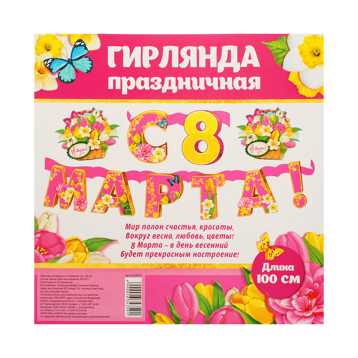 Невозможно представить нашу жизнь без праздников! Мы всегда ждём их и предвкушаем, обдумываем, как проведём памятный день, тщательно выбираем подарки и аксессуары, ведь именно они создают и поддерживают торжественный настрой. Гирлянда на люверсах "С 8 Марта!" — это отличный выбор, который привнесёт атмосферу праздника в ваш дом!