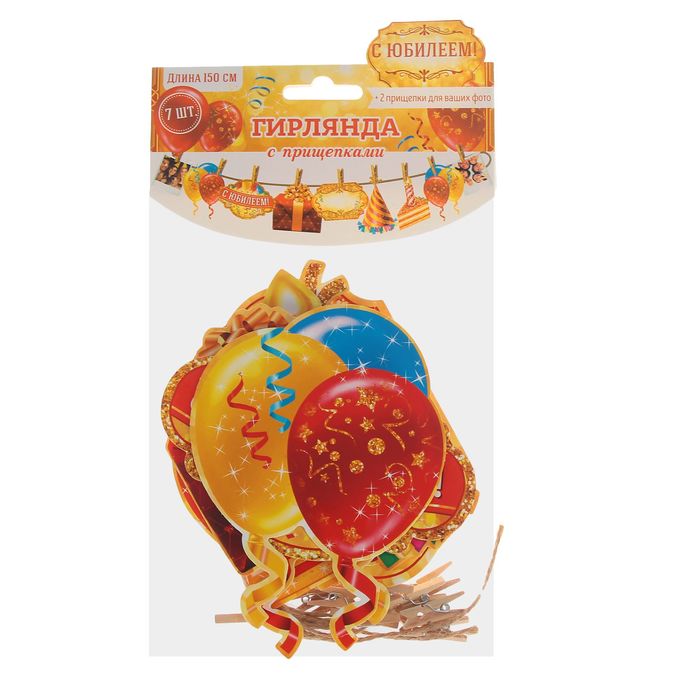Гирлянда на прищепках "С Юбилеем!", дл. 150 см