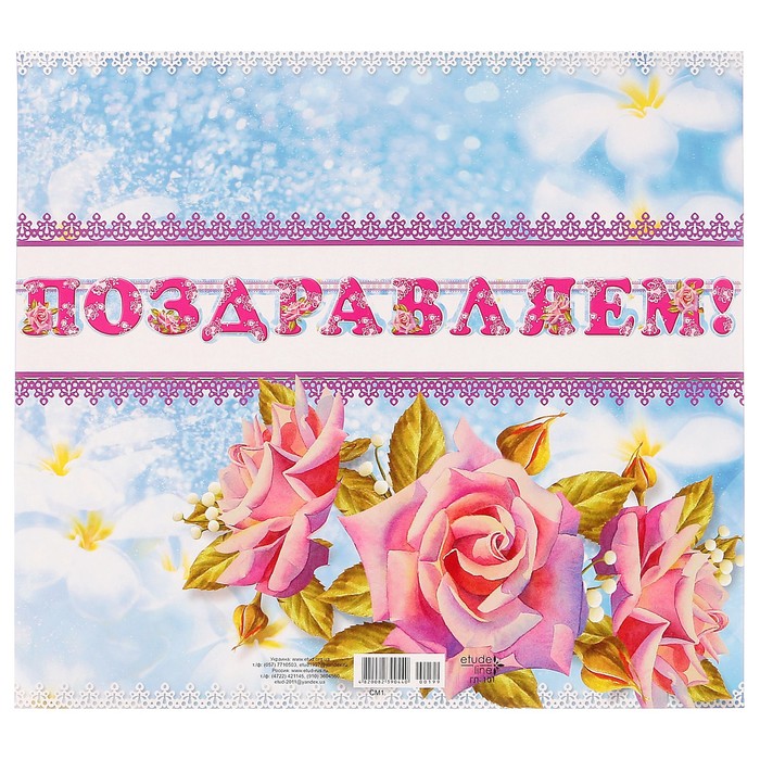 Гирлянда "Поздравляем!" цветы, белые узоры
