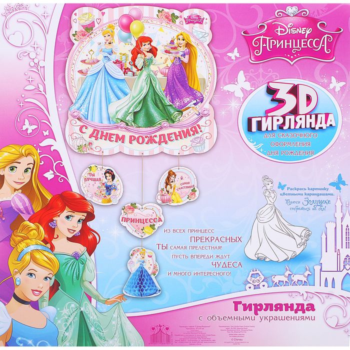 Гирлянда с 3D гофрой "С днём рождения!", Принцессы