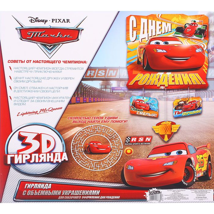 Гирлянда с 3D гофрой "С днём рождения!", Тачки