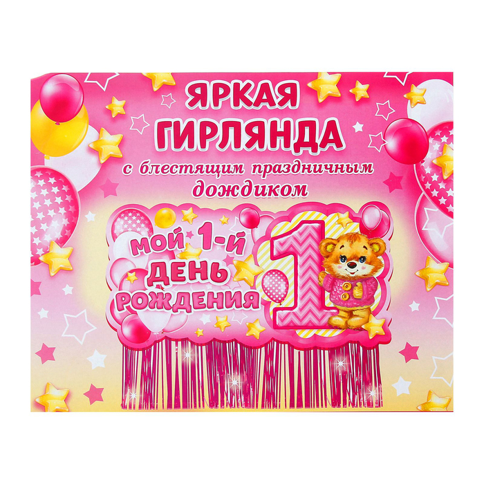 Гирлянда с блестящим дождиком "Мой 1-ый День рождения"